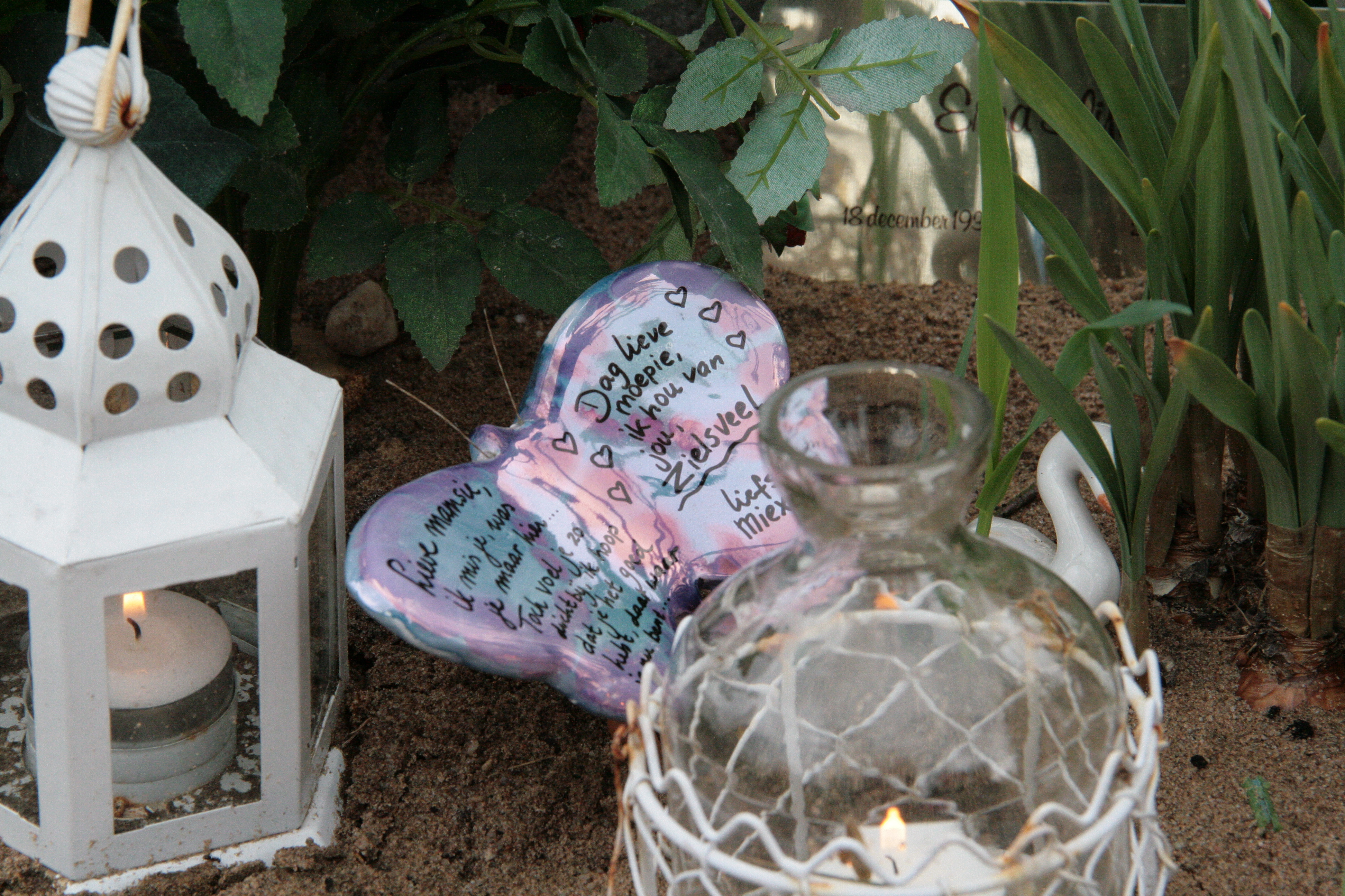 Lieve mamsie, gisteren was het Moederdag. Een Moederdag zonder jou, dat is nog nooit voorgekomen…. Het is koud, zeker op de begraafplaats, waar wij dan even zijn met Erik, Ineke, Frank, de kinderen en ik. Nu komt Erik een hapje bij ons eten, dat is gezellig. We missen jou, lieverd! Kusjes van ons, xxx. Miexie.