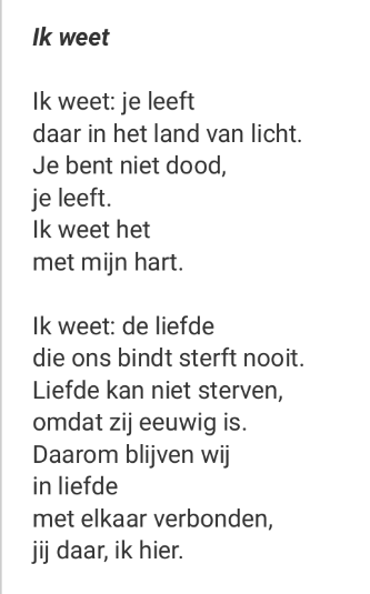 We denken aan jou, lieve mamsie, op deze dag nog een beetje meer, en ik vind de gedachte fijn dat je samen met papa en Ineke ergens bent, in vrede en in de warmte van het hiernamaals 🕊️