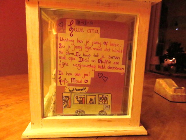 Tachtig jaar geleden werd er een bijzonder mens geboren, en dat was jij. Het is maar een kale bedoening je verjaardag te vieren zonder jou… Toch hebben we er iets moois van gemaakt; we hebben bloemen gebracht bij je graf, lantaarntjes opgehangen en aangestoken, de lieve briefjes gelezen die waren achtergelaten door je (schoon)zusje(s) en broer op mooie winterplantjes, en even samen stil gestaan bij jou, onze lieve mamsie.